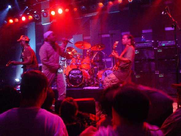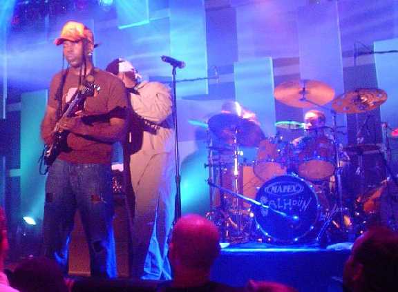 LEFT: Vernon Reid, Corey Glover (hidden) and Wil Calhoun! RIGHT: Vernon, Corey, Wil and Doug!