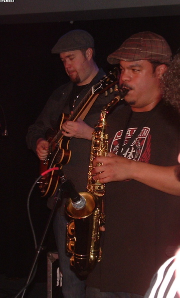 hot saxophone...drummer Alan Evans performed lead vocals with backing vocal